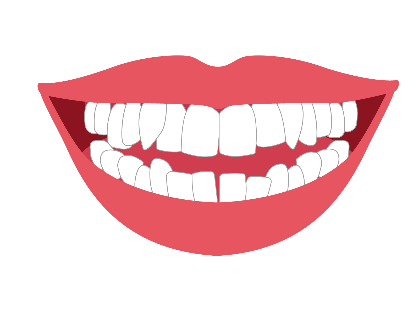 叢生とは、歯が並ぶスペースが足りずに、歯が前後や上下にずれてデコボコに並んでいる状態を指します。歯がまっすぐ生えずに重なり合っていたり、斜めを向いていたりすることで、歯列全体のバランスも崩れやすくなってしまうのが特徴です。乱ぐい歯と呼ばれることがあり、見た目のコンプレックスにもなりやすい歯列不正です。