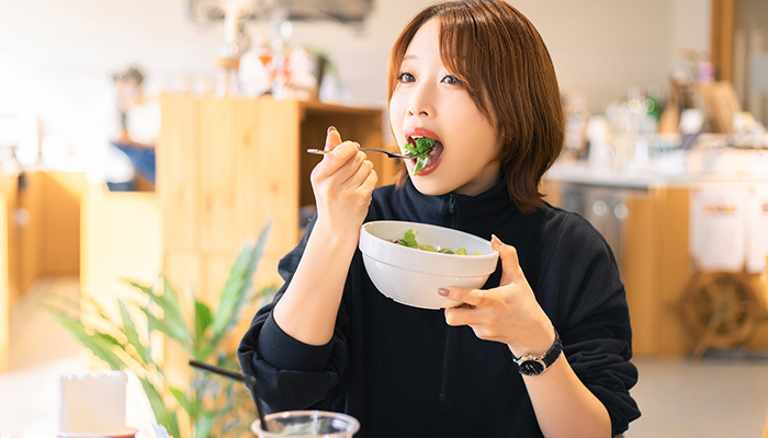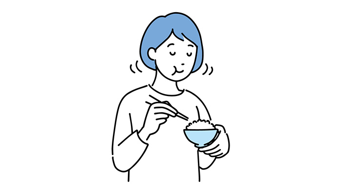 ゆっくり噛んで食べると、食べ過ぎる前に脳に満腹信号が届き、食べ過ぎを防ぐことができます。