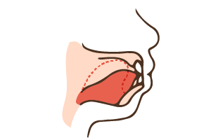 口呼吸をすると舌の位置が下がり、上顎に力が伝わらず成長が遅れます。また舌が上の前歯を押すと出っ歯になり、下の前歯を押すとと噛み合わせが正常と逆になります。鼻呼吸への改善が必要です。