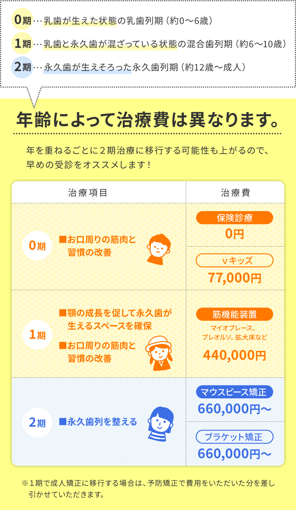 矯正相談は無料で行っています。ご相談の際にお子さんの成長段階に合わせて最も適した矯正治療を提供させていただきます。