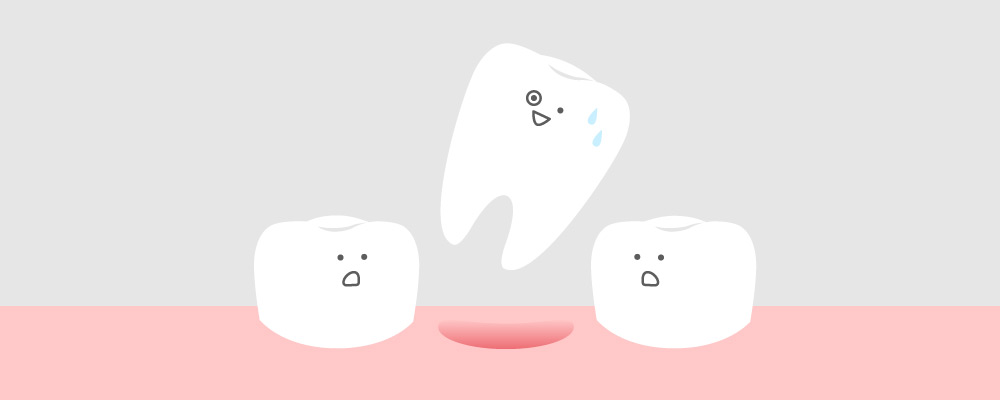 乳歯が生え変わりで抜けるケースは、特に問題ありません。ただし、例外的に、後から生えるはずの永久歯がもともと足りない場合というのがあり、その様なケースでは、乳歯が抜けても永久歯が生えてこないので、歯を人工的に補う必要があります。